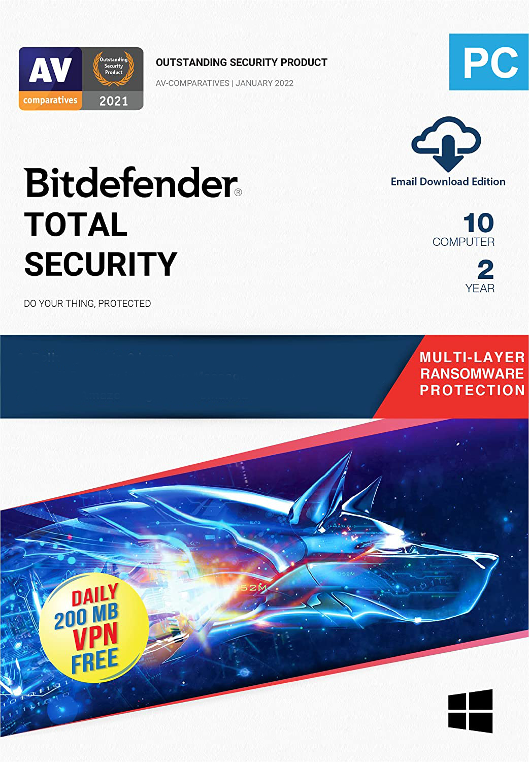 Bitdefender Total Security 10 Devices 2 Year Windows (Digital Delivery)