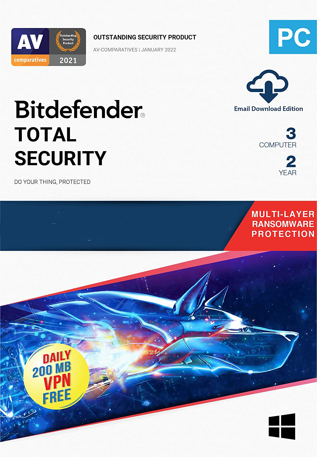 Bitdefender Total Security 3 Devices 2 Year Windows (Digital Delivery)