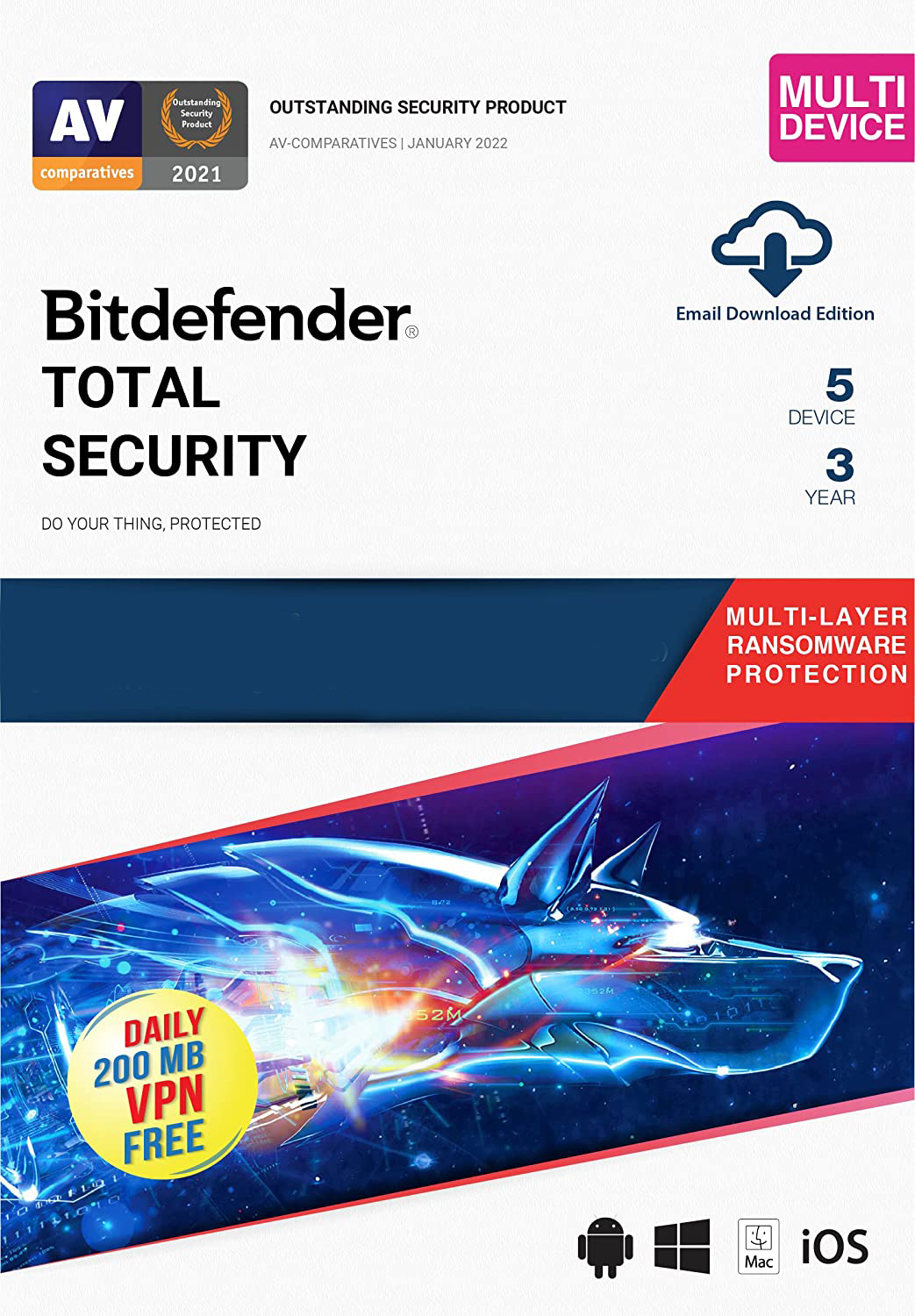 Bitdefender Total Security 5 Devices 3 Year Windows/Mac/Android/iOS (Digital Delivery)