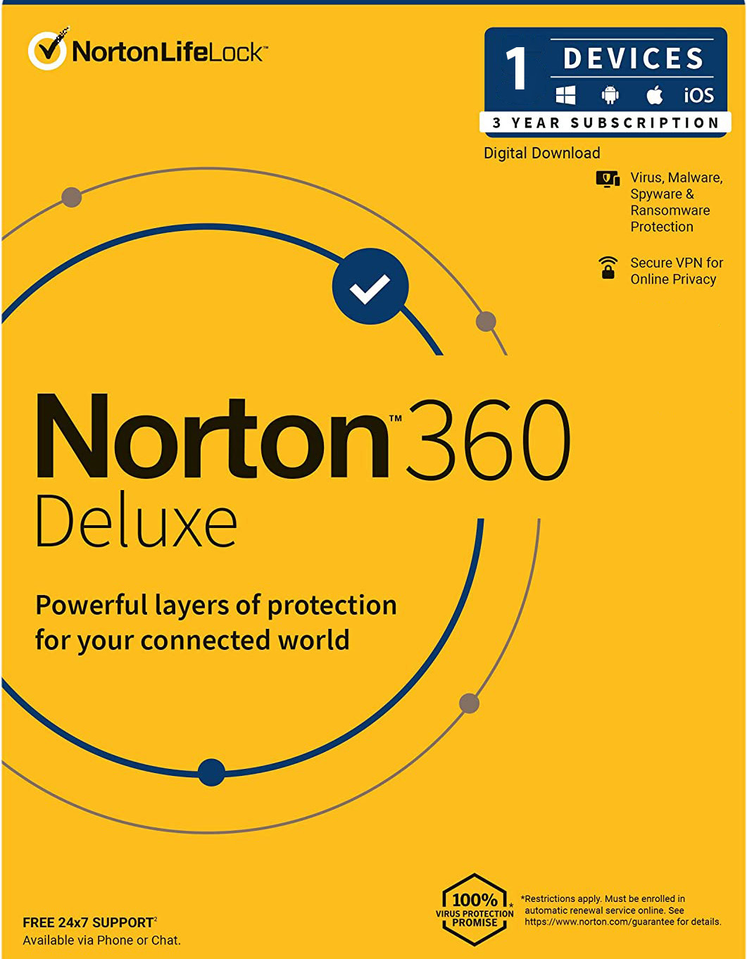 Norton 360 Deluxe 1 Device 3 Year Windows/Mac/Android/iOS (Digital Delivery) (Global Key)