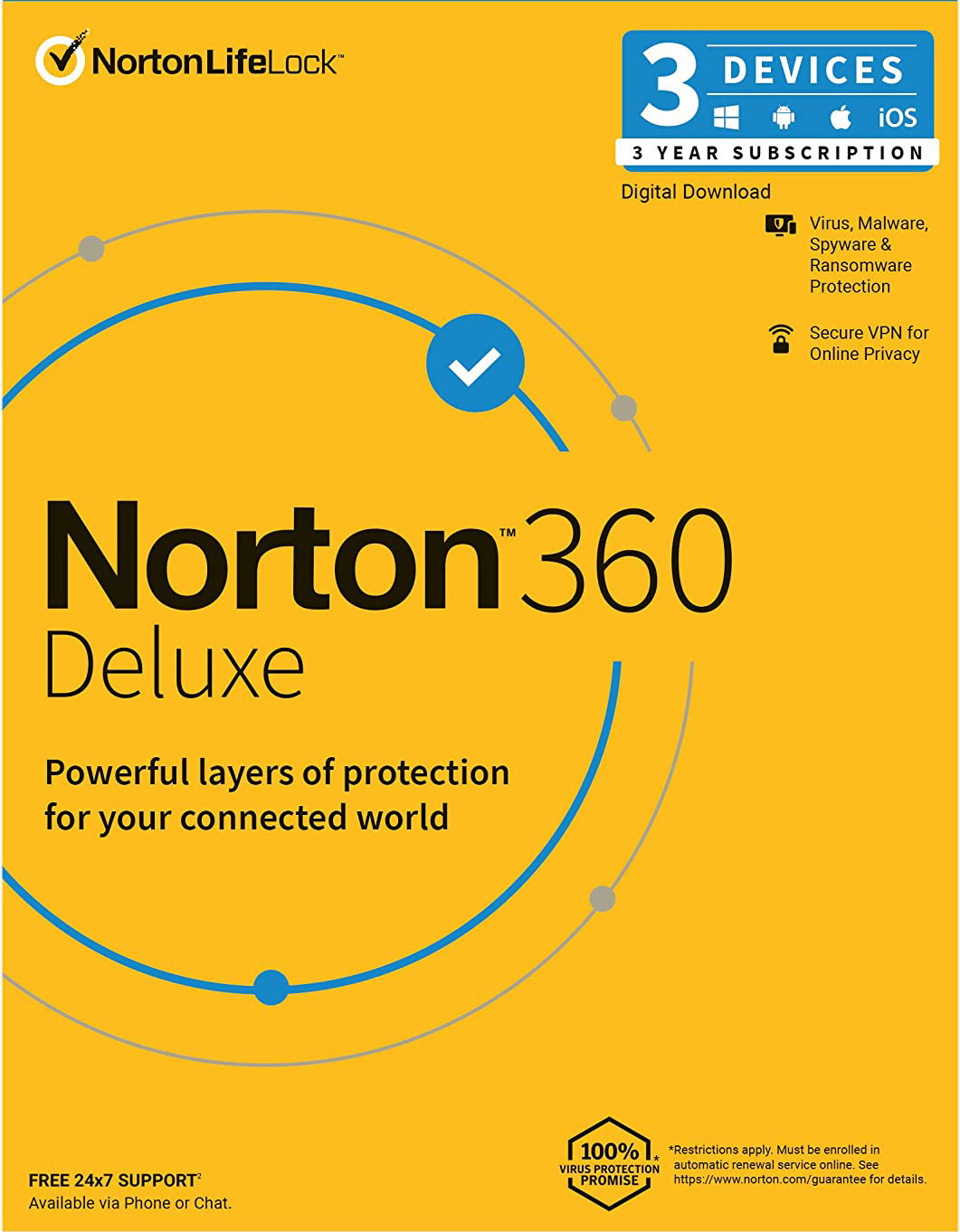 Norton 360 Deluxe 3 Devices 3 Year Windows/Mac/Android/iOS (Digital Delivery) (Global Key)